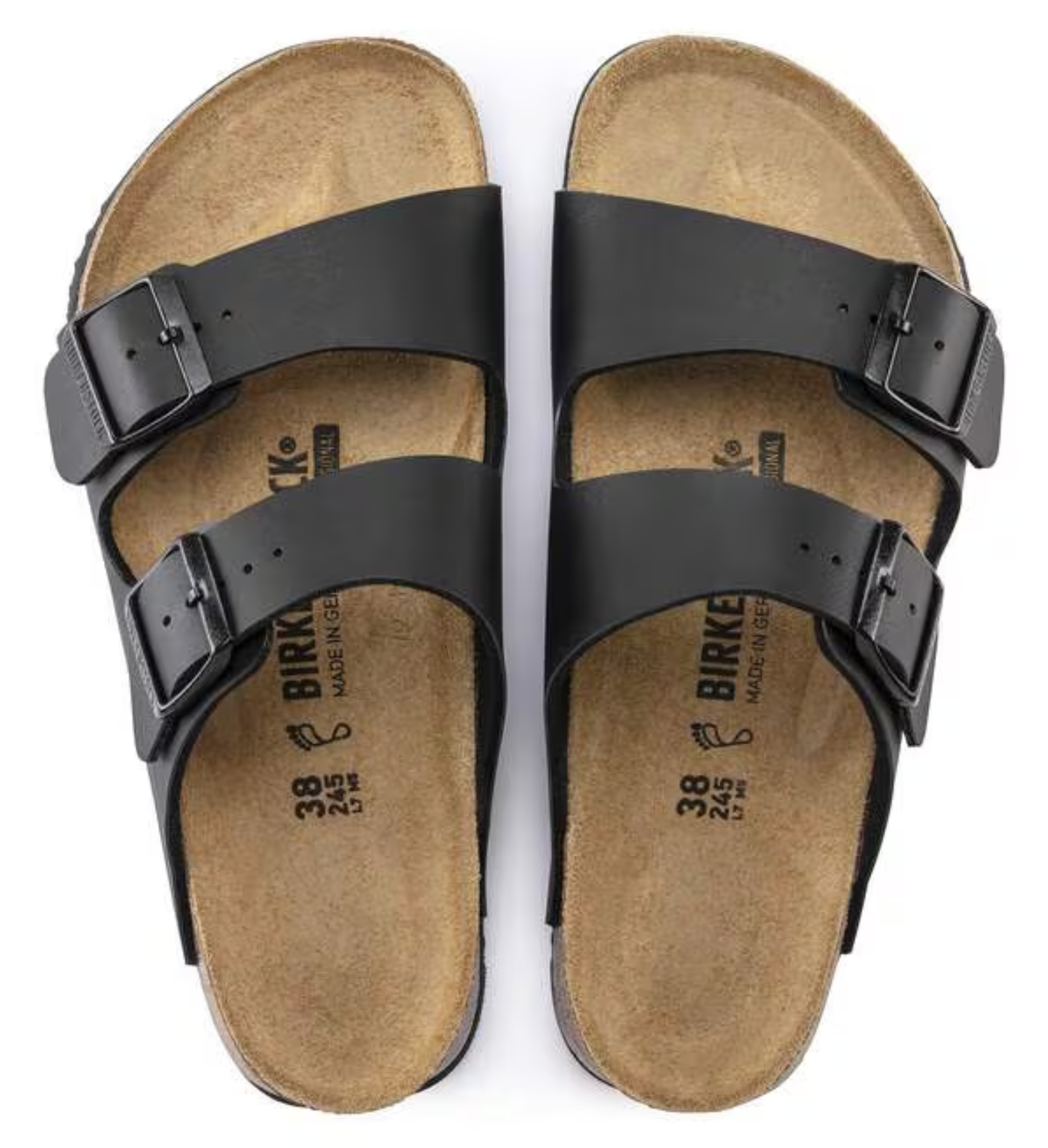 Birkenstock Arizona skórnir eru með tveimur stillanlegum ólum til að auðvelt sé að aðlaga hann að þínum fæti. Skórnir eru búnir hinum vinsæla Birkenstock innsóla, sem mótast að fætinum með tímanum og veitir framúrskarandi stuðning við hæl, il og táberg.