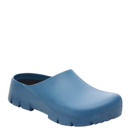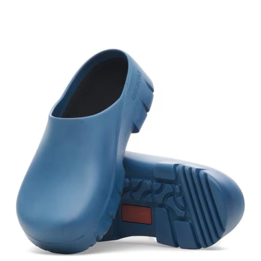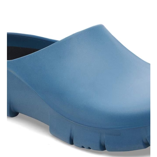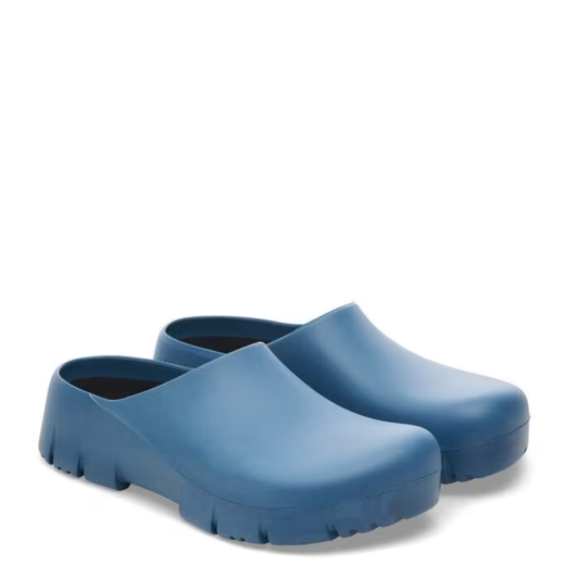 Birkenstock Super-Birki er margnota klossi úr pólýúretani (polyurethane) sem hentar fyrir vinnu, garðyrkju og tómstundir. Hann er vatnsheldur og óhreinindi festast síður á slétta yfirborðinu, sem gerir hann einstaklega auðveldan í þrifum.