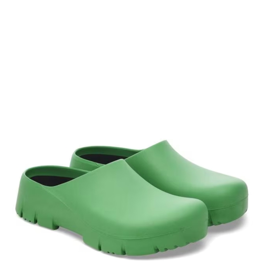 Birkenstock Super-Birki er margnota klossi úr pólýúretani (polyurethane) sem hentar fyrir vinnu, garðyrkju og tómstundir. Hann er vatnsheldur og óhreinindi festast síður á slétta yfirborðinu, sem gerir hann einstaklega auðveldan í þrifum.