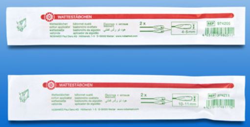 Magn: 2 stykki í bréfi og 100 bréf í kassaDauðhreinsaðir bómullarpinnar, 4-5mm þykk bómull og 15cm langur trépinni. Hentar vel til hreinsunar á sári, má bleyta.