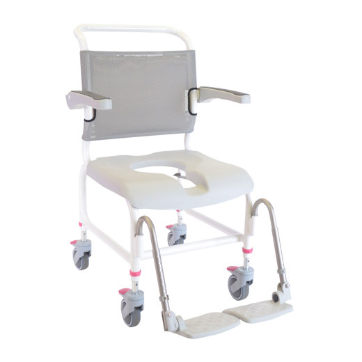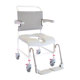 HMN Nielsen er hæðarstillanlegur, léttur sturtu- og salernisstól á hjólum með netabaki.