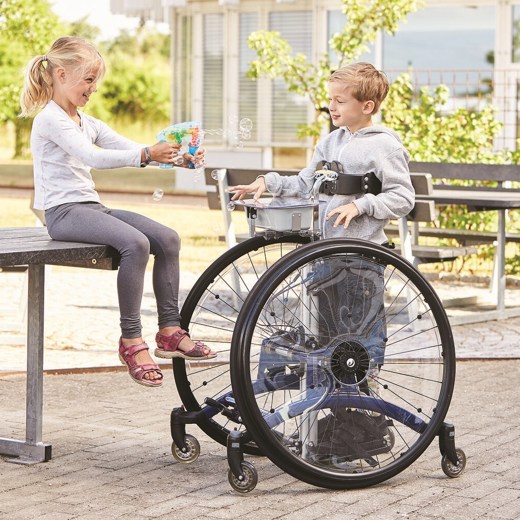 Rabbit Up er standur með möguleika á drifhjólum sem veita notandanum tækifæri til að ferðast um og kanna umhverfið í standandi stöðu. Drifhjólin og lítil framhjól gera standinn auðveldan í akstri á sléttu undirlagi.