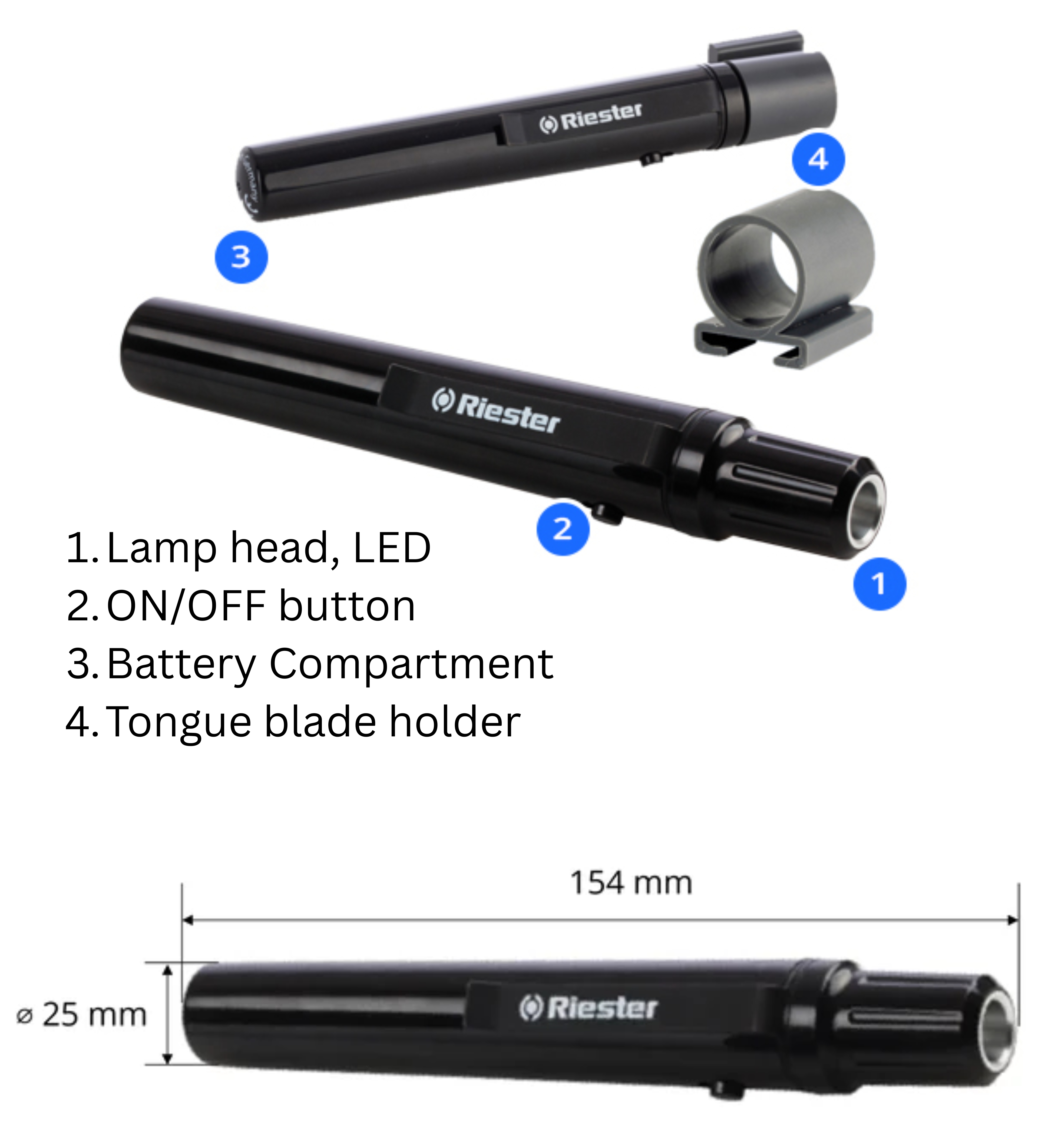 e-xam® pennaljósið er einstaklega bjart og býður upp á allar mögulegar samsetningar til að lýsa upp líkamsop eins og háls, nef og eyru, til að skoða sjáöldur og til almennrar notkunar. e-xam® er búið xenon-peru eða LED-peru með AA-handföngum til notkunar með alkalín-rafhlöðum.
