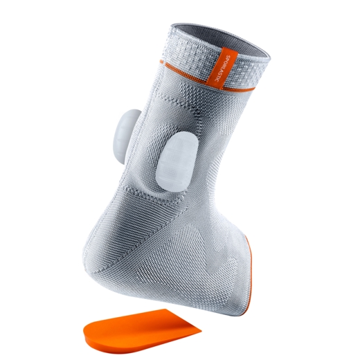 Stuðningshlíf við hásin. Silikonpúðar við hásinina, beggja vegna. Upphækkun undir hæla til að létta álagi af sininni.