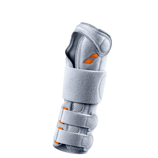 Stíf úlnliðsspelka með tveimur stálspöngum sem, hægt er að taka úr og aðlaga.
