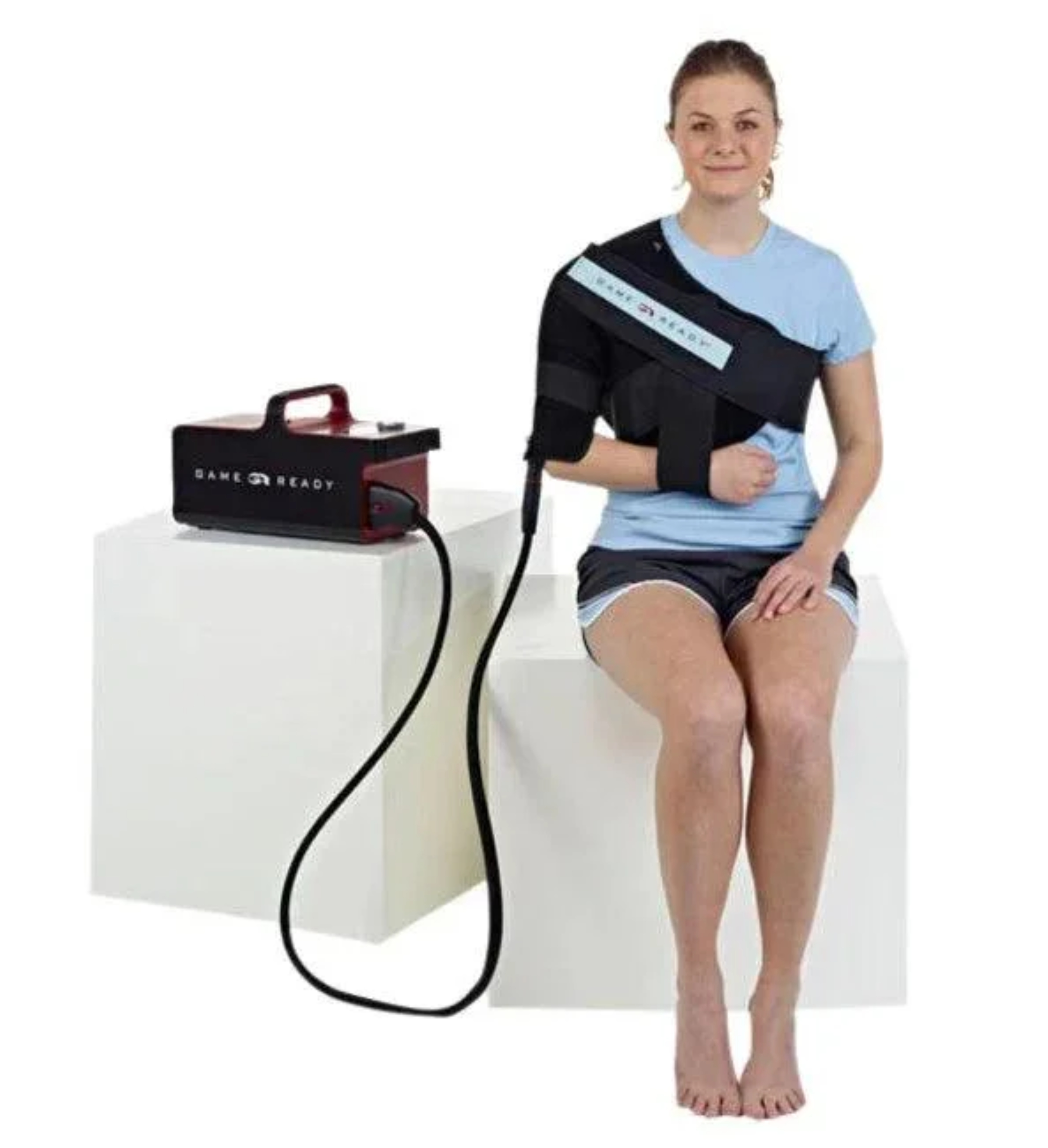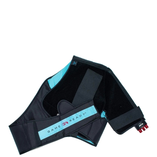 Fullbúin axlarhulsa fyrir kæli- og þrýstingsmeðferð með Game Ready endurheimtarkerfinu. Hulsan er sérhönnuð til að mótast að lögun vinstri axlar til að tryggja jafna kælingu og þrýsting til að draga úr bólgum, minnka verki og hjálpa til við að stytta bataferli eftir meiðsli eða aðgerðir.