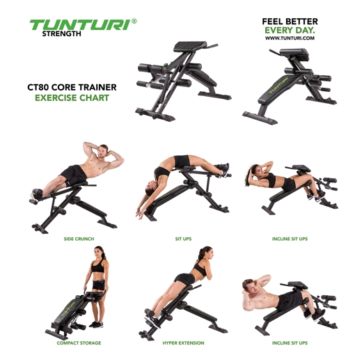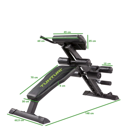 Æfingabekkur fyrir t.d. kvið og bak. Mismunandi þjálfunarmöguleikar, sérstaklega fyrir efri hluta líkamans. Fótarúlla fyrir fleiri æfingaaðferðir. Bekkurinn er fyrirferðarlítill og auðvelt er að brjóta hann saman.