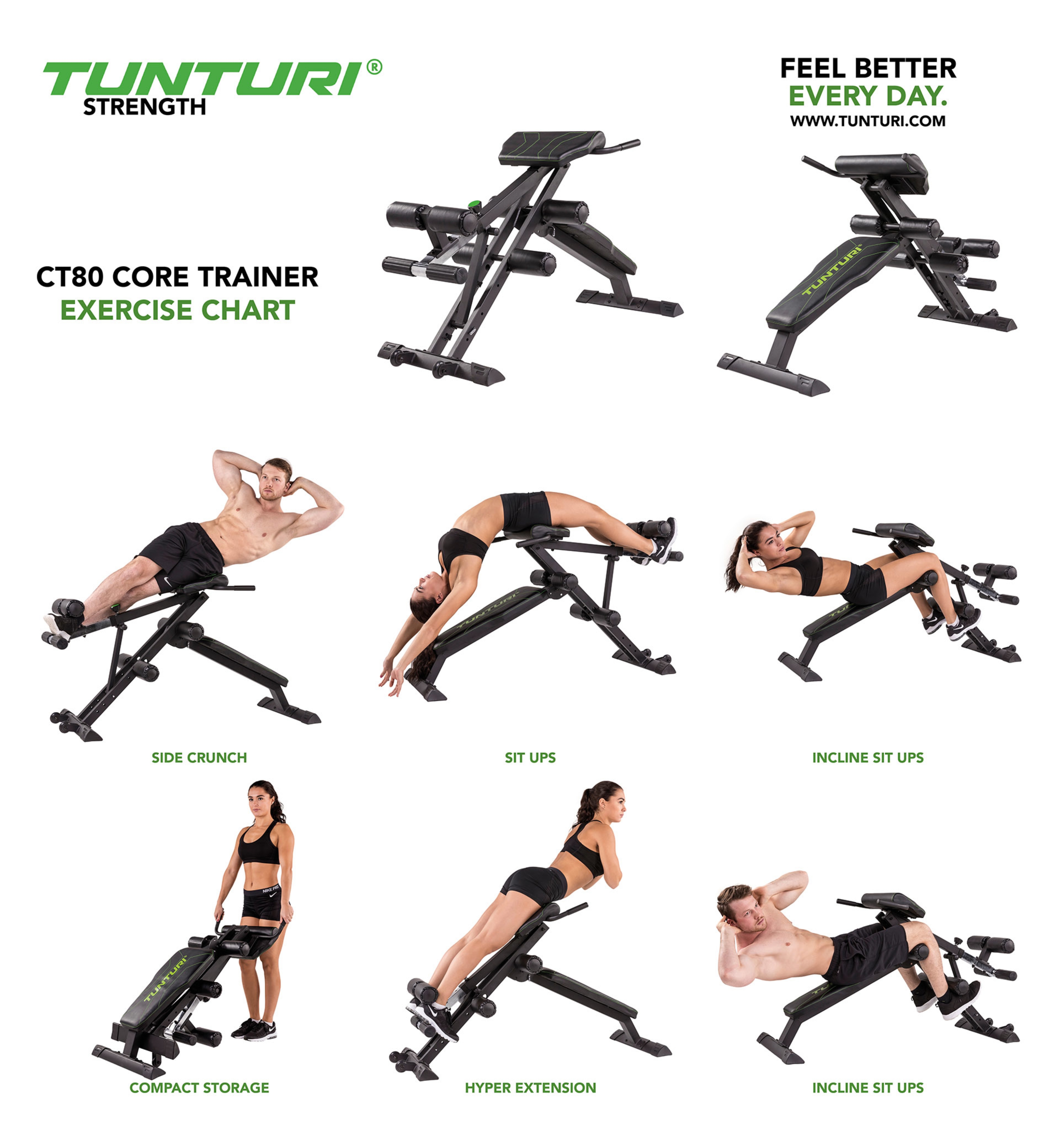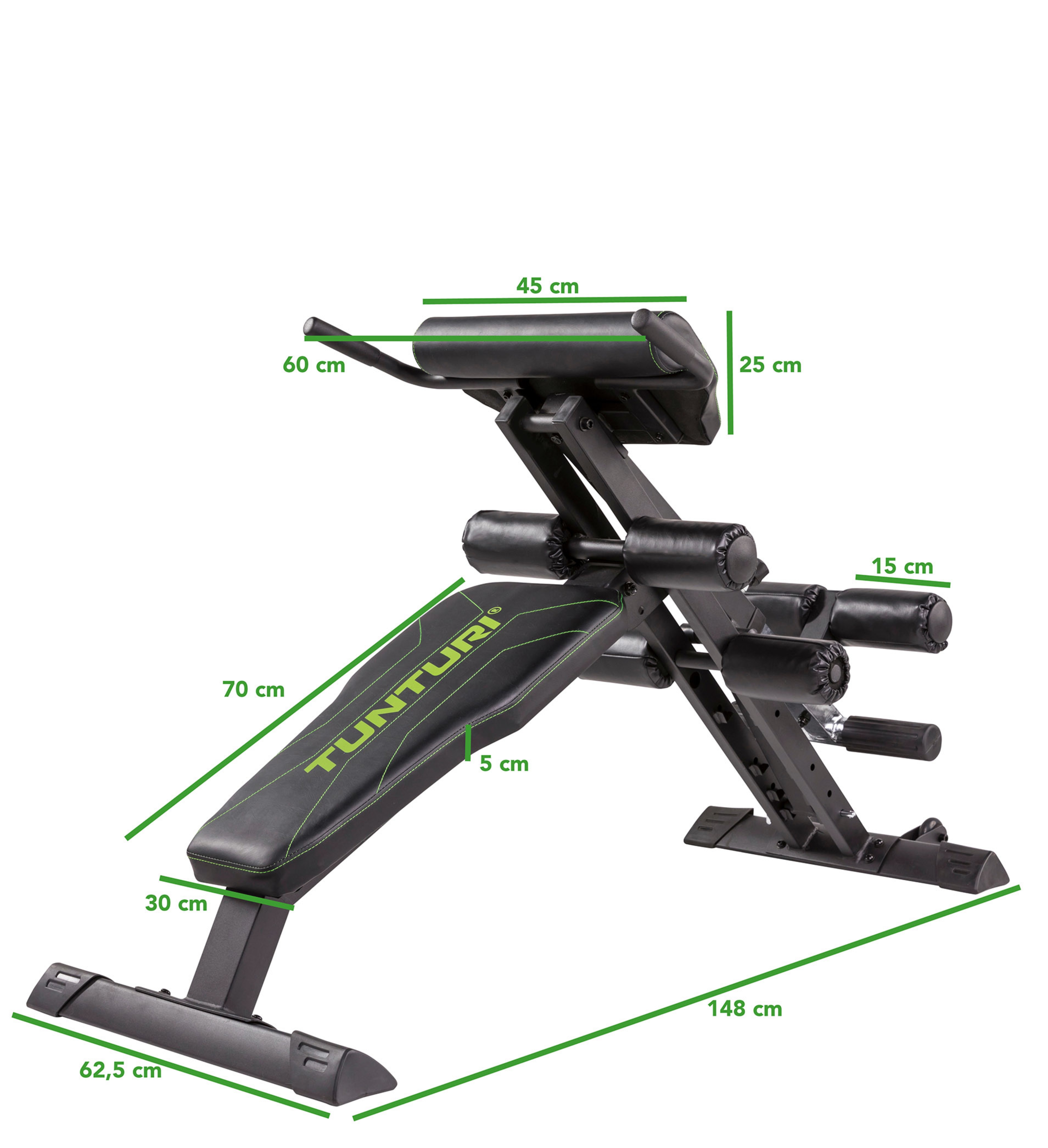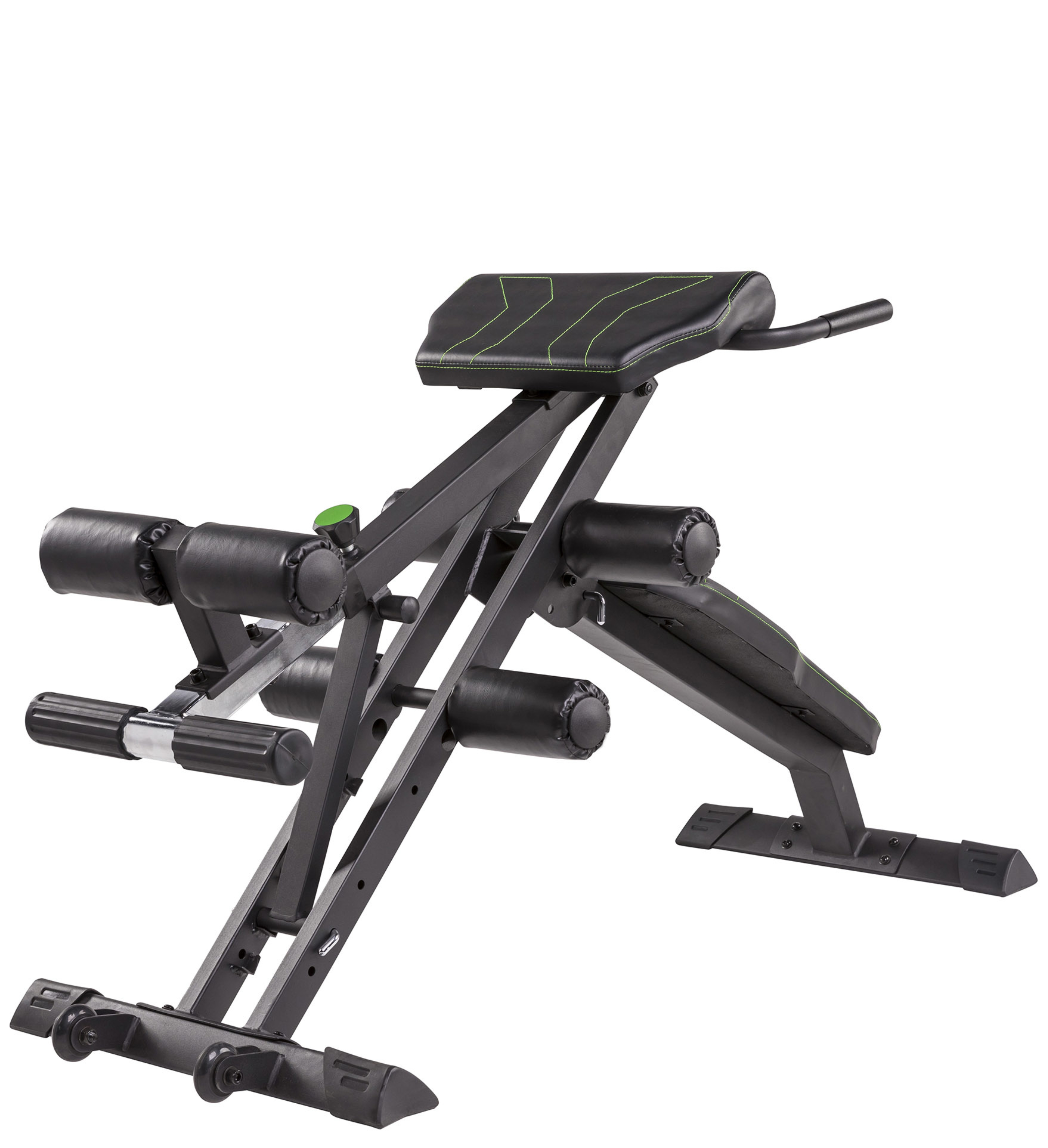 Æfingabekkur fyrir t.d. kvið og bak. Mismunandi þjálfunarmöguleikar, sérstaklega fyrir efri hluta líkamans. Fótarúlla fyrir fleiri æfingaaðferðir. Bekkurinn er fyrirferðarlítill og auðvelt er að brjóta hann saman.
