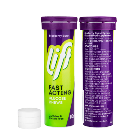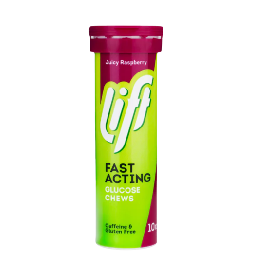 Lift Glucose-töflurnar eru tyggjanlegar og veita skjóta og áhrifaríka orkuaukningu með 3,7 g af hraðvirkum glúkósa (þrúgusykri) í hverri töflu. Þessar tyggitöflur eru tilvaldar bæði til að auka afköst í íþróttum og til að stjórna blóðsykri tafarlaust.